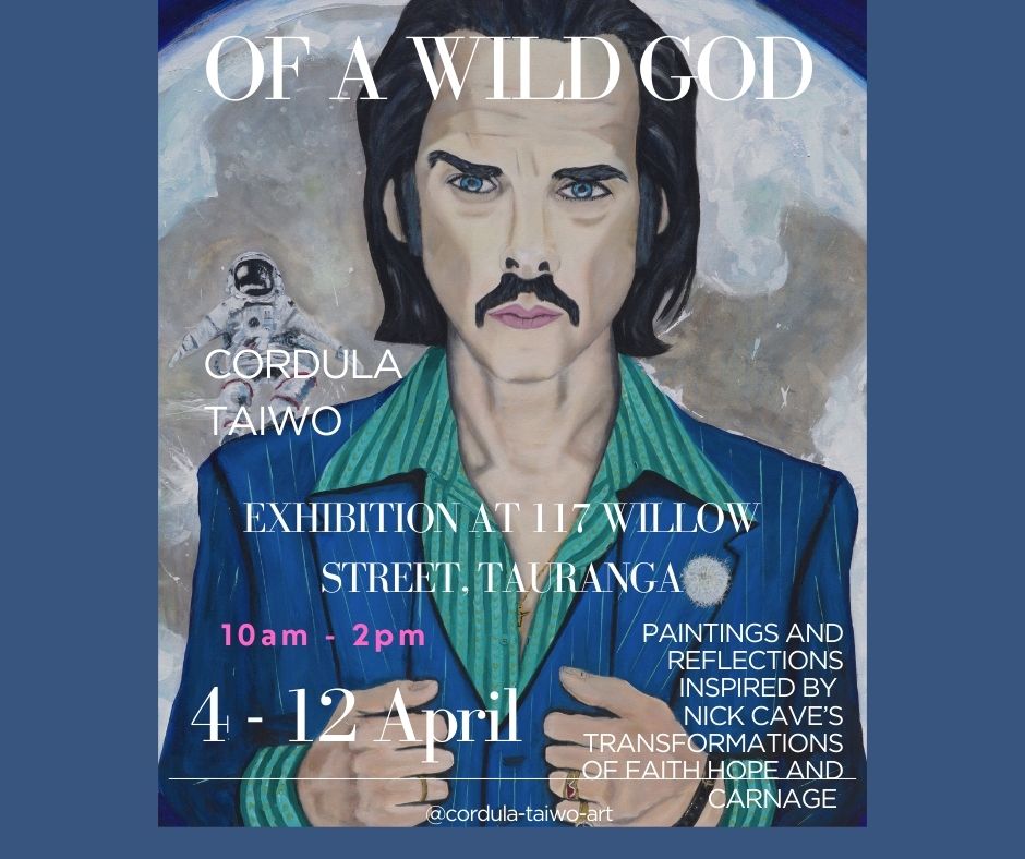 Local artist Cordula Taiwo brings her hit exhibition, Of a Wild God, to Tauranga this Easter (4–12 April). After a debut in Wellington that saw 500 visitors in just 10 hours, this pop-up event at 117 Willow Street offers a profound exploration of faith, hope, and art. While the 15 paintings focus on the journey of Nick Cave, the experience is a broader celebration of musical solace. Accompanying voice recordings of Cordula’s letters feature a diverse range of influences, from Nina Simone and Leonard Cohen to Pavarotti and the Tedeschi Trucks Band.